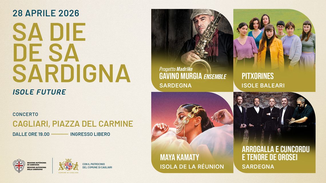 Il cuore dell’iniziativa sarà il grande evento musicale, patrocinato dal Comune di Cagliari, in programma a Cagliari martedì 28 aprile dalle ore 19:00 in Piazza del Carmine. Uno spazio simbolico della città che, attraverso la musica, torna a essere luogo di incontro, partecipazione e vitalità culturale. Sul palco si alterneranno artisti provenienti da diverse isole del mondo, protagonisti di progetti che intrecciano radici e innovazione. Il viaggio sonoro prenderà forma con l’incontro tra Arrogalla (Francesco Medda) e il Cuncordu e Tenore de Orosei, uno dei gruppi più autorevoli nella tradizione vocale sarda, custode sia del canto sacro a cuncordu sia del canto profano a tenore: un dialogo intenso tra elettronica contemporanea e canto tradizionale sardo, in cui le stratificazioni sonore create da Arrogalla si fondono con una delle espressioni più autentiche della polifonia isolana, riconosciuta dall’Unesco come Patrimonio culturale immateriale dell’umanità. A seguire, il pubblico sarà accompagnato nell’universo musicale del Gavino Murgia Ensemble, formazione internazionale guidata dal sassofonista e compositore sardo, in grado di costruire paesaggi sonori in cui convivono improvvisazione jazz, tradizione mediterranea e suggestioni africane. Un progetto che restituisce il Mediterraneo come spazio vivo di scambio e contaminazione culturale. Il programma proseguirà aprendo una finestra sulle altre isole europee con le Pitxorines, gruppo delle Isole Baleari che lavora sulla riscoperta e reinterpretazione del repertorio popolare del proprio territorio. A completare il quadro internazionale sarà la presenza di Maya Kamaty, artista originaria dell’Isola della Réunion, tra le voci più significative della nuova scena dell’Oceano Indiano. La serata sarà presentata da Ambra Pintore.