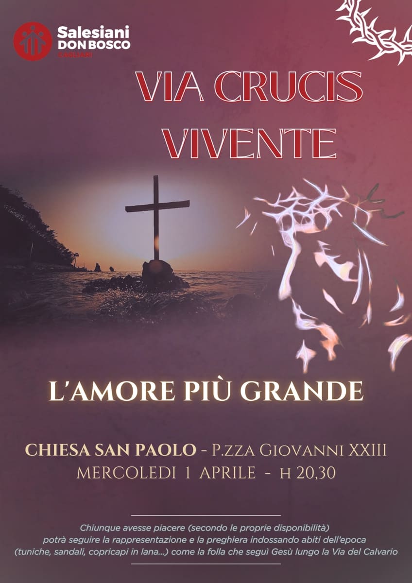 La “Via Crucis Vivente - l’Amore più grande” si svolgerà nella Chiesa di San Paolo in piazza Giovanni XXIII a Cagliari, il 1 Aprile alle h 20,30.